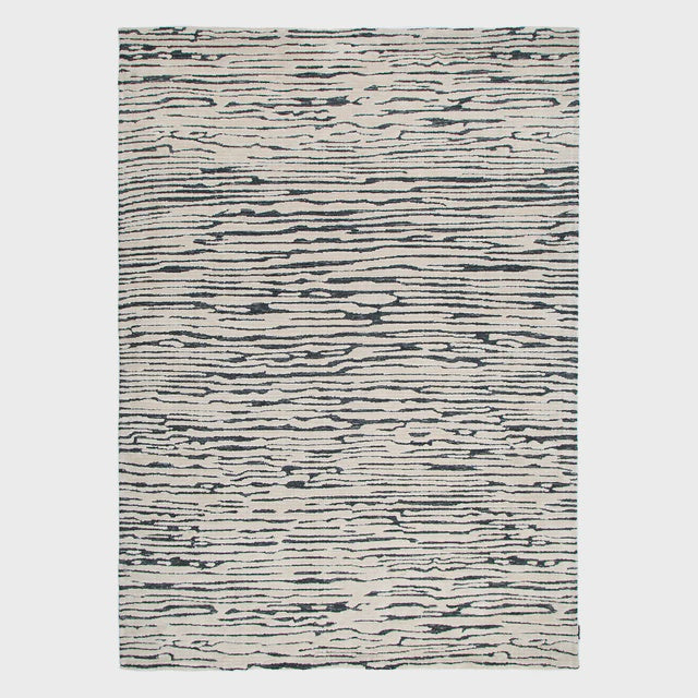 The Kendra Dune Rug in Ivory & Black showcases refined craftsmanship with its luxurious polyester construction and machine-knitted woven technique. This transitional design delivers exceptional comfort underfoot while maintaining timeless elegance. Expertly produced in India, it's available as part of a versatile five-design collection that seamlessly complements any interior aesthetic.