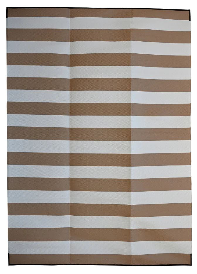 Transform your outdoor adventures with this stylish 270x360 cm camping mat featuring classic beige and white stripes. Crafted from recycled plastic straws, it combines durability with environmental responsibility. The foldable design makes it perfect for caravan trips, picnics, and camping expeditions across Australia. Washable and reversible, this lightweight mat offers practical elegance for every outdoor occasion.