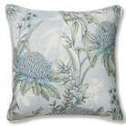 Features a native floral design in tones of blue and green on a blue linen blend base. Plain reverse, piping and a concealed zip.åÊ